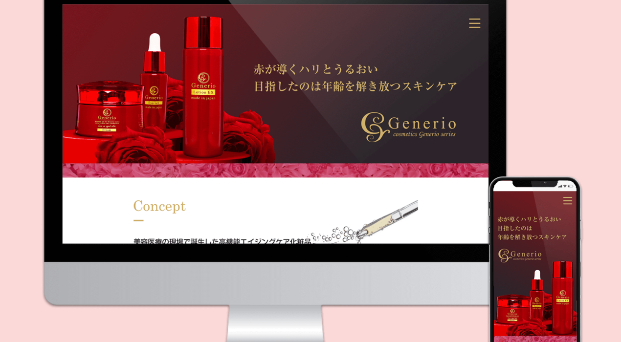 Web-Design デザイン制作 レスポンシブ対応。高級感と上品さをイメージし、ボトルの赤を引き立てるようにデザイン制作しました。 Production / 2021 / mac XD https://generio.jp/