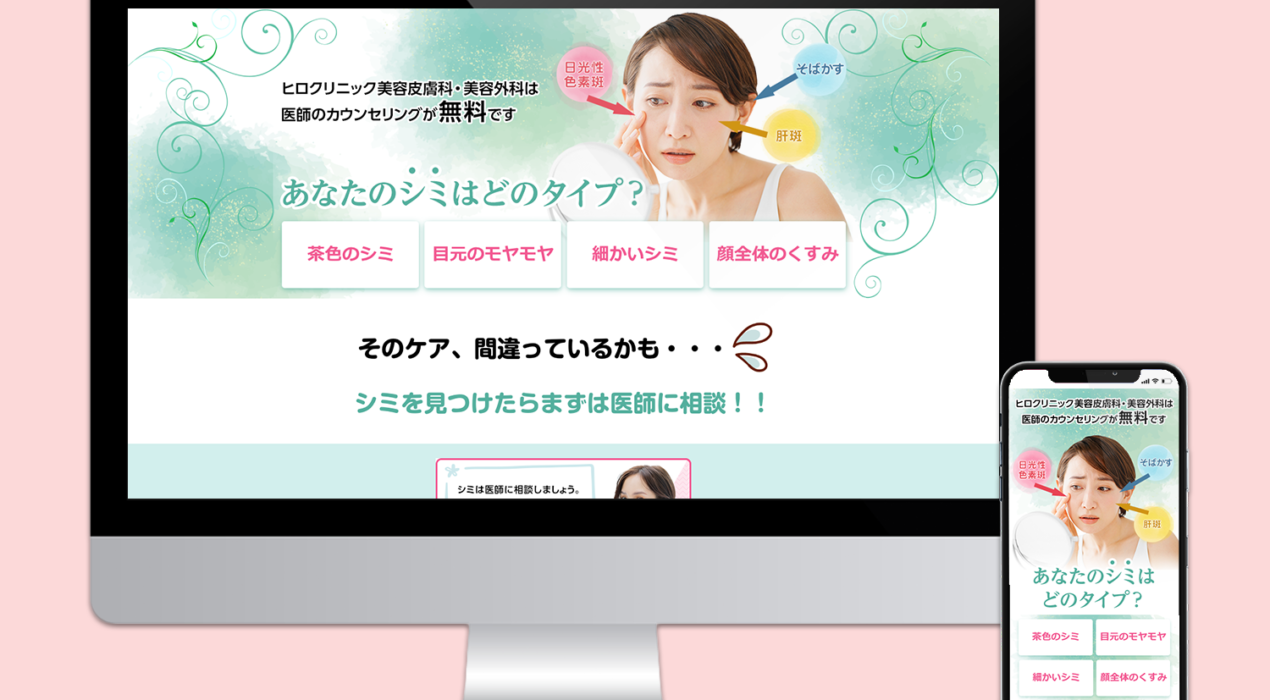 LP-Design デザイン制作 ロゴ制作 レスポンシブ対応。 Production / 2022 / mac Photoshop XD https://www.hiro-clinic.or.jp/beautyad/shimi/ #