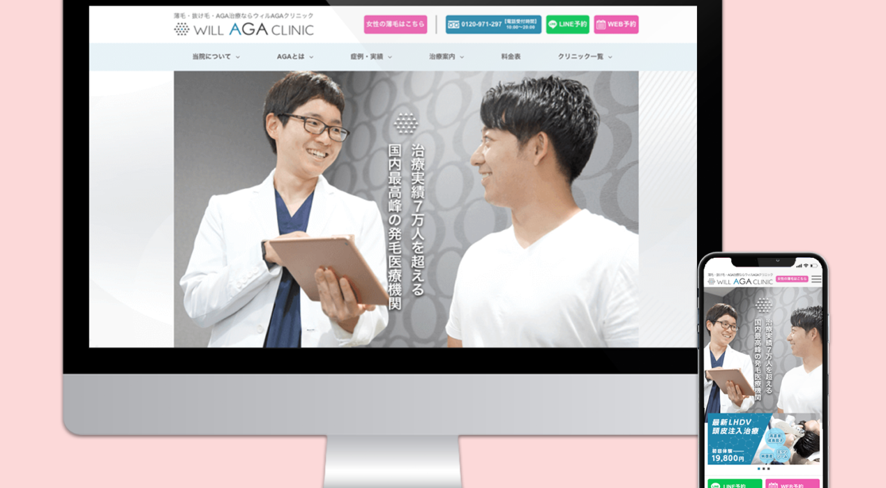 Web-Design デザイン制作 ディレクション 今風のデザインというよりも、クリニック感を意識したシンプルなデザインに仕上げました。 Production / 2023 / mac Photoshop XD https://will-agaclinic.com/