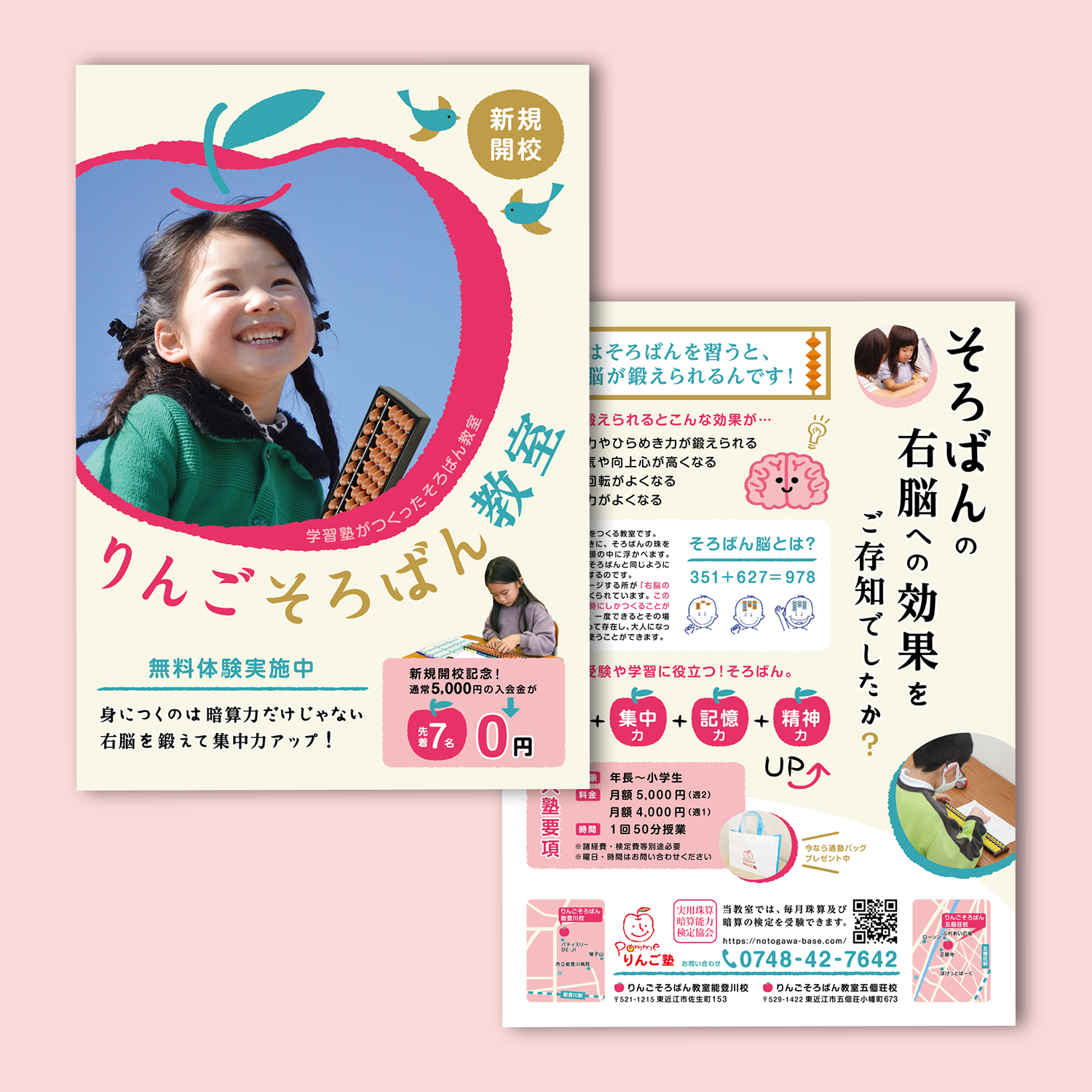 A4(両面)-Flyer-Design デザイン制作 イラスト制作 MAP制作 文章制作 小学生のママ世代にどうしたら興味を持って読んでもらえるか?といった部分を1番に意識し、文章も自ら考えレイアウトしました。 デザインはポップで可愛らしく目に留まるようなデザインを心がけました。 Production / 2021 / mac Illustrator